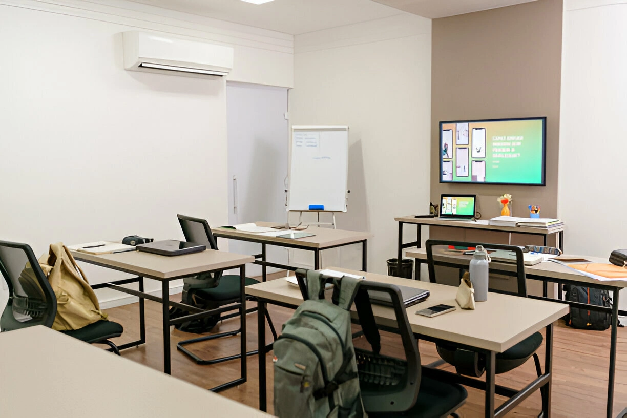 The **Air-Conditioned Classrooms** at our school provide a comfortable and conducive learning environment for students. Equipped with modern air-conditioning systems, they ensure optimal temperature control, allowing students to focus on their studies without discomfort from extreme weather conditions. Proper ventilation and air circulation enhance indoor air quality, reducing fatigue and improving concentration. The cool and pleasant atmosphere fosters better learning, keeping students refreshed and engaged throughout the day. These classrooms also help in maintaining hygiene by minimizing dust and pollutants. Our commitment to providing a world-class learning experience includes ensuring student comfort through well-maintained, air-conditioned classrooms.